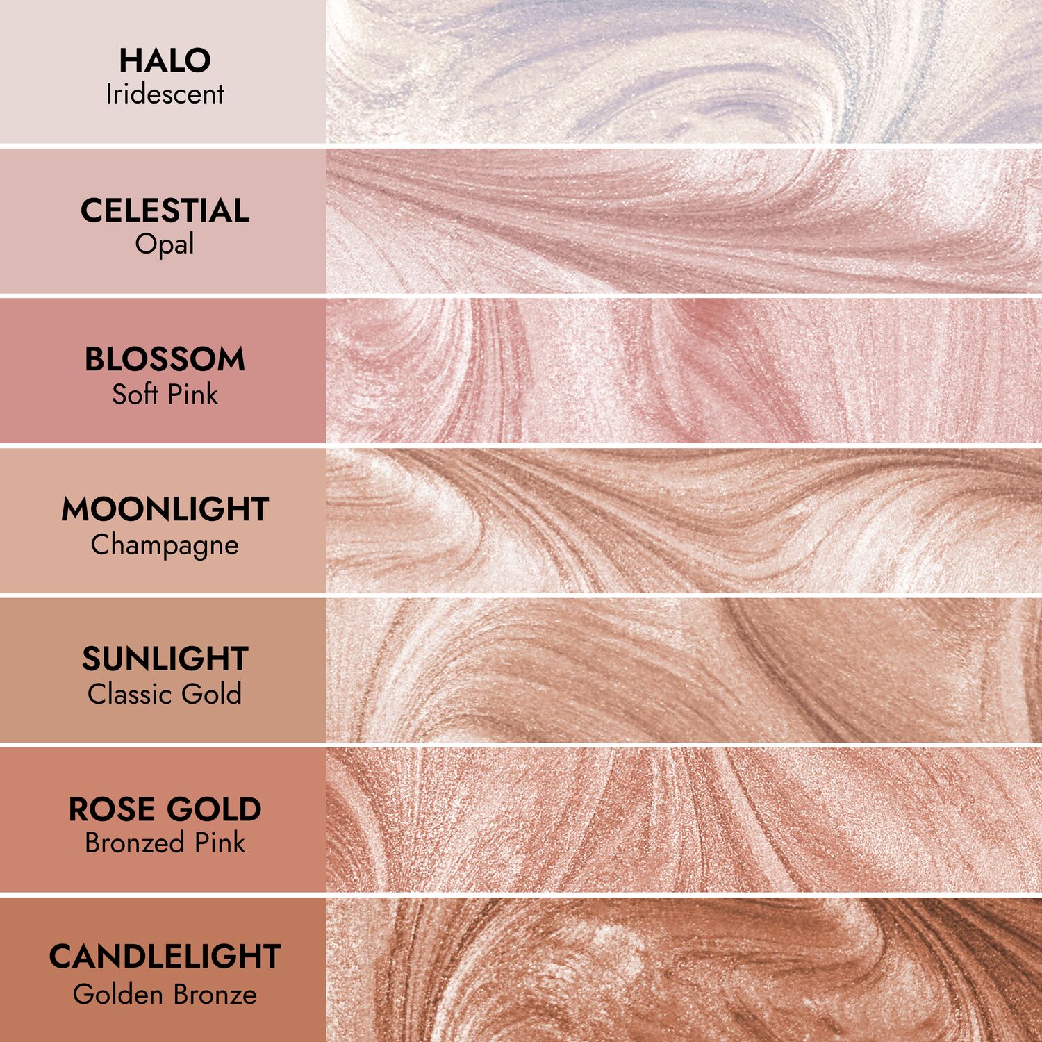 While the Custom Enhancer Drops are a liquid highlighter, the Custom Enhancer Palette includes three luminous powder shades.