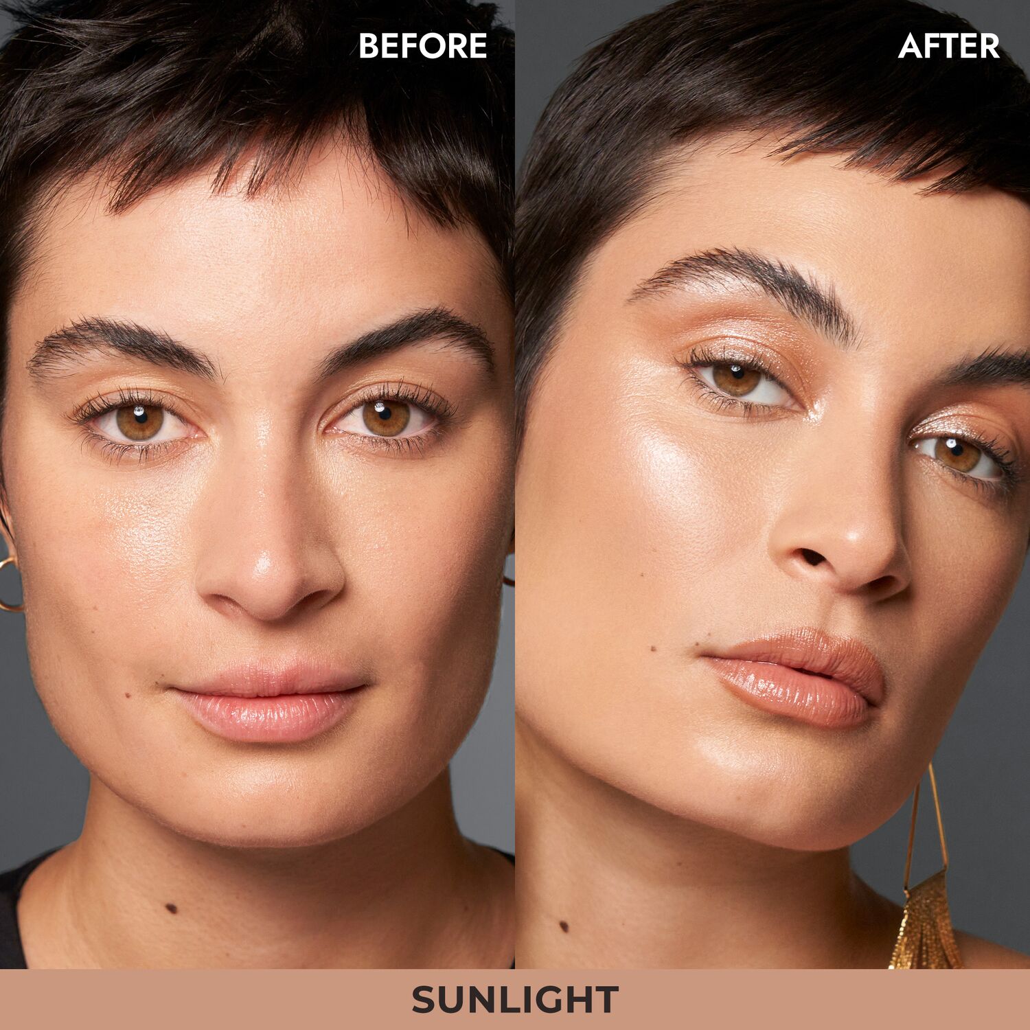 Apply to clean, moisturized skin along with your foundation. If using as a high-impact highlighter, lightly brush onto target areas and then build as desired.
